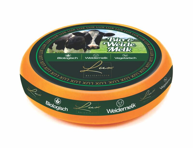 Onze eigen kazen lijn, puur en romig van smaak. Onze LUX Bio kazen worden gemaakt van 100% biologische melk en van 100% Weidemelk. Hiervoor moeten de koeien minimaal 180 dagen per jaar minimaal 8 uur per dagen buiten lopen. Een blije koe zorgt namelijk voor de lekkerste melk!
